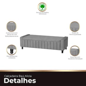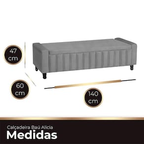 Eleve o estilo do seu quarto com a Calçadeira Baú Estofada Alicia, uma fusão perfeita de modernidade e sofisticação. Seu design estiloso e detalhes em formato de ripas na frente conferem uma estética única, enquanto o assento liso adiciona um toque de elegância discreta. Além de funcional como baú, esta calçadeira é mais do que um móvel; é uma peça de design que transforma o ambiente. Com uma decoração inigualável, a Alicia é o complemento perfeito para o seu quarto, proporcionando um toque de elegância que não passará despercebido. Renove o seu espaço com esta calçadeira que transcende o convencional.