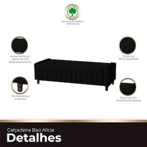 Eleve o estilo do seu quarto com a Calçadeira Baú Estofada Alicia, uma fusão perfeita de modernidade e sofisticação. Seu design estiloso e detalhes em formato de ripas na frente conferem uma estética única, enquanto o assento liso adiciona um toque de elegância discreta. Além de funcional como baú, esta calçadeira é mais do que um móvel; é uma peça de design que transforma o ambiente. Com uma decoração inigualável, a Alicia é o complemento perfeito para o seu quarto, proporcionando um toque de elegância que não passará despercebido. Renove o seu espaço com esta calçadeira que transcende o convencional.