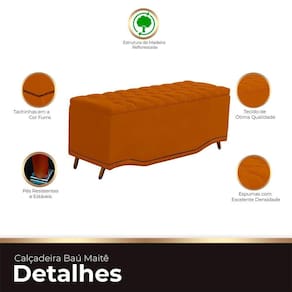 Calçadeira Baú Casal Estofada Maitê Veludo Cor Terracota