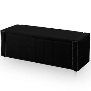 Calçadeira Baú Casal Estofada Toronto Veludo Preto