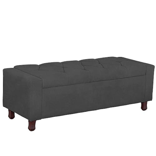 Calçadeira Baú Casal Estofada Valencia Veludo Cinza Escuro