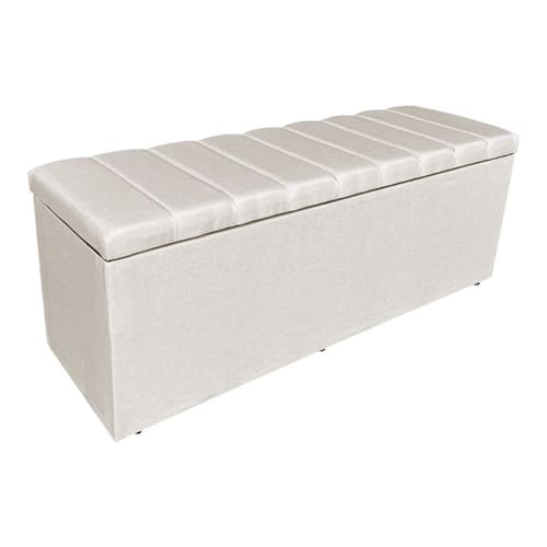 Calçadeira Baú Casal King 1,95m Londres Linho Bege Dal Poz Estofados