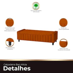 Calçadeira Baú Casal King Size Estofada Alicia Veludo Cor Terracota