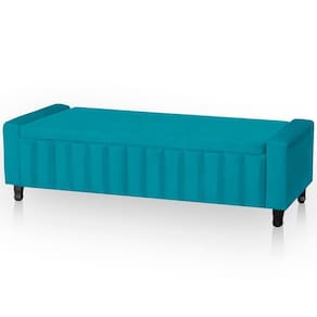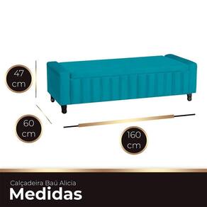 Calçadeira Baú Casal Queen Estofada Alicia Veludo Cor Azul Claro