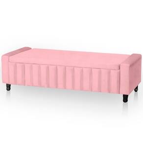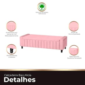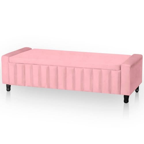 Calçadeira Baú Casal Queen Estofada Alicia Veludo Cor Rosa Bebe