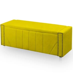 Calçadeira Baú Casal Queen Estofada Toronto Veludo Cor Amarelo