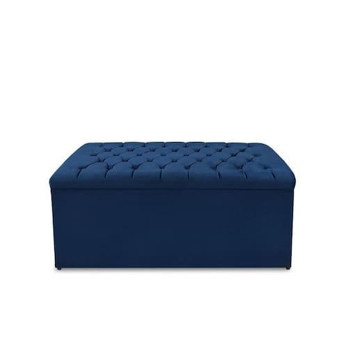 Calçadeira Baú Estofada Dunas Queen 160 Cm - Veludo Azul