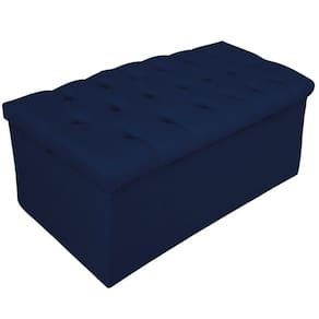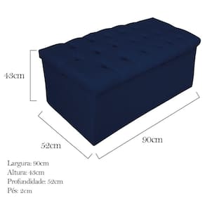 Calçadeira Baú Estofada Mel 90 Cm Solteiro Azul Marinho