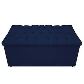 Calçadeira Baú Estofada Mel 90 Cm Solteiro Com Capitonê Suede Azul Marinho - Doce Sonho Móveis