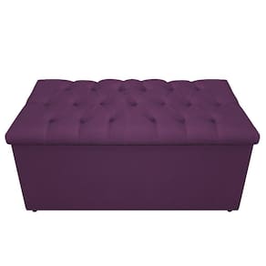 Calçadeira Baú Estofada Mel 90 Cm Solteiro Com Capitonê Suede Roxo - Doce Sonho Móveis