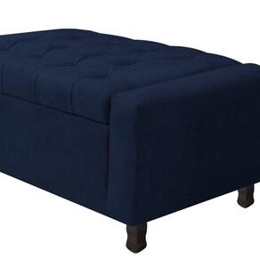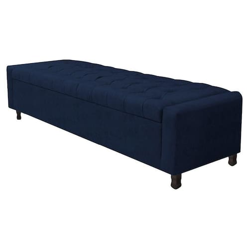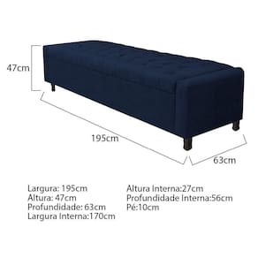 Calçadeira Baú King Everest P02 195 Cm Para Cama Box Suede - Doce Sonho Móveis Cor Azul Marinho