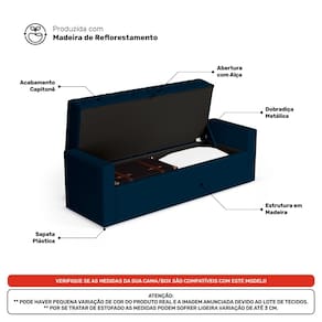 Calçadeira Báu King Size Atena 195cm Capitonê Veludo Azul Marinho - Desk Design