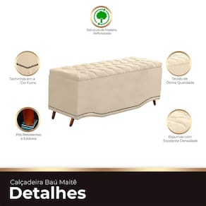Transforme seu quarto em um espaço de luxo com a Calçadeira Estofada Maitê. Além de ser estilosa, moderna e sofisticada, ela apresenta detalhes em captones e acabamentos com botões na cor do móvel, proporcionando uma decoração inigualável. As tachinhas de alumínio adicionam um toque de sofisticação, elevando ainda mais o ambiente. Esta calçadeira não é apenas um móvel funcional; é uma peça de design que transformará seu quarto em um oásis de elegância. Adquira a Calçadeira Maitê para um toque final de luxo e beleza no seu espaço pessoal