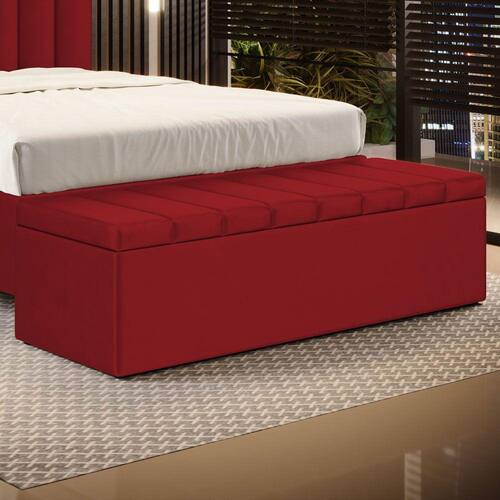 A Calçadeira Navi traz conforto e elegância, com excelente custo benefício. Possui um design único e detalhes que dão um toque de sofisticação e um ótimo acabamento. Feita de matéria prima de qualidade e ótimo tecido, para garantir durabilidade e manter a beleza de seu quarto por muito tempo. O produto possui baú interno para armazenagem de itens e organização. Esta calçadeira irá proporcionar toda a beleza para seu ambiente. Adquira já!Dimensões do ProdutoLargura: 140 cmAltura: 45 cmProfundidade: 46 cmPeso: 15 KgDimensões do Produto EmbaladoLargura: 142 cmAltura: 47 cmProfundidade: 48 cmPeso: 17 KgCaracterísticas do Produto:Madeira de eucalipto proveniente de reflorestamentoFixação com grampos galvanizadosEspuma Poliuretano D20Revestimento: VeludoCor: VermelhoTamanho: Casal padrão para cama de 138 cmPossui pés: SimTipo de pés: 4 sapatasPossui baú internoEmbalagem: plástico bolha, papelão ondulado, malha, plásticoGarantia de 3 meses contra defeitos de fábrica.Diferenciais: - Madeira de alta qualidade- Design moderno- Material resistente- Ótimo acabamento- Estrutura reforçadaSistema de Montagem: O produto é enviado montado.Manual de Montagem: SimVolumes: 1 VolumeMontagem: Recomendamos que seja feita por um profissionalRecomendação de Limpeza: Utilize pano levemente úmidoObservações importantes- Produto para uso residencial em ambiente interno, não devendo ficar exposto diretamente ao sol, calor e umidades excessivas.- Pode haver alguma diferença de tonalidade entre a imagem e o produto real, por conta do tratamento de imagens e a calibração de cores do seu monitor.- As imagens são meramente ilustrativas, não acompanham objetos de decoração e eletrônicos.