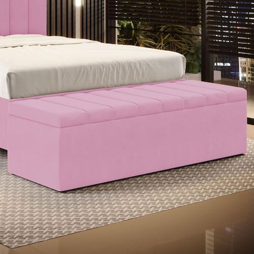 A Calçadeira Navi traz conforto e elegância, com excelente custo benefício. Possui um design único e detalhes que dão um toque de sofisticação e um ótimo acabamento. Feita de matéria prima de qualidade e ótimo tecido, para garantir durabilidade e manter a beleza de seu quarto por muito tempo. O produto possui baú interno para armazenagem de itens e organização. Esta calçadeira irá proporcionar toda a beleza para seu ambiente. Adquira já!Dimensões do ProdutoLargura: 195 cmAltura: 45 cmProfundidade: 46 cmPeso: 25 KgDimensões do Produto EmbaladoLargura: 197 cmAltura: 47 cmProfundidade: 48 cmPeso: 27 KgCaracterísticas do Produto:Madeira de eucalipto proveniente de reflorestamentoFixação com grampos galvanizadosEspuma Poliuretano D25Revestimento: SuedCor: RosêTamanho: King para cama de 193 cmPossui pés: SimTipo de pés: 4 sapatasPossui baú internoEmbalagem: plástico bolha, papelão ondulado, malha, plásticoGarantia de 3 meses contra defeitos de fábrica.Diferenciais: - Madeira de alta qualidade- Design moderno- Material resistente- Ótimo acabamento- Estrutura reforçadaSistema de Montagem: O produto é enviado montado.Manual de Montagem: SimVolumes: 1 VolumeMontagem: Recomendamos que seja feita por um profissionalRecomendação de Limpeza: Utilize pano levemente úmidoObservações importantes- Produto para uso residencial em ambiente interno, não devendo ficar exposto diretamente ao sol, calor e umidades excessivas.- Pode haver alguma diferença de tonalidade entre a imagem e o produto real, por conta do tratamento de imagens e a calibração de cores do seu monitor.- As imagens são meramente ilustrativas, não acompanham objetos de decoração e eletrônicos.