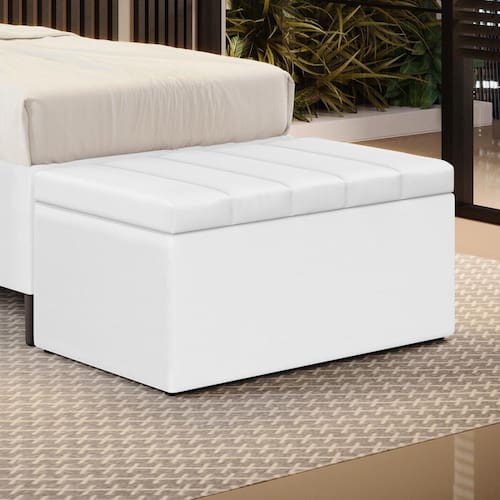 A Calçadeira Navi traz conforto e elegância, com excelente custo benefício. Possui um design único e detalhes que dão um toque de sofisticação e um ótimo acabamento. Feita de matéria prima de qualidade e ótimo tecido, para garantir durabilidade e manter a beleza de seu quarto por muito tempo. O produto possui baú interno para armazenagem de itens e organização. Esta calçadeira irá proporcionar toda a beleza para seu ambiente. Adquira já!Dimensões do ProdutoLargura: 90 cmAltura: 45 cmProfundidade: 46 cmPeso: 10 KgDimensões do Produto EmbaladoLargura: 90 cmAltura: 47 cmProfundidade: 48 cmPeso: 12 KgCaracterísticas do Produto:Madeira de eucalipto proveniente de reflorestamentoFixação com grampos galvanizadosEspuma Poliuretano D20Revestimento: Couro ArtificialCor: BrancoTamanho: Solteiro para cama de 88 cmPossui pés: SimTipo de pés: 4 sapatasPossui baú internoEmbalagem: plástico bolha, papelão ondulado, malha, plásticoGarantia de 3 meses contra defeitos de fábrica.Diferenciais: - Madeira de alta qualidade- Design moderno- Material resistente- Ótimo acabamento- Estrutura reforçadaSistema de Montagem: O produto é enviado montado.Manual de Montagem: SimVolumes: 1 VolumeMontagem: Recomendamos que seja feita por um profissionalRecomendação de Limpeza: Utilize pano levemente úmidoObservações importantes- Produto para uso residencial em ambiente interno, não devendo ficar exposto diretamente ao sol, calor e umidades excessivas.- Pode haver alguma diferença de tonalidade entre a imagem e o produto real, por conta do tratamento de imagens e a calibração de cores do seu monitor.- As imagens são meramente ilustrativas, não acompanham objetos de decoração e eletrônicos.