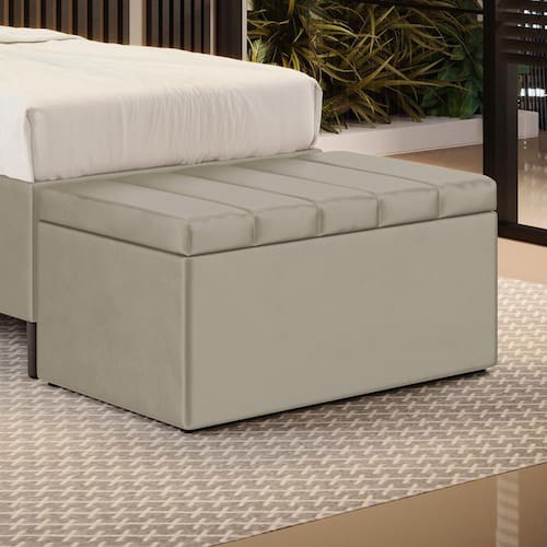 A Calçadeira Navi traz conforto e elegância, com excelente custo benefício. Possui um design único e detalhes que dão um toque de sofisticação e um ótimo acabamento. Feita de matéria prima de qualidade e ótimo tecido, para garantir durabilidade e manter a beleza de seu quarto por muito tempo. O produto possui baú interno para armazenagem de itens e organização. Esta calçadeira irá proporcionar toda a beleza para seu ambiente. Adquira já!Dimensões do ProdutoLargura: 90 cmAltura: 45 cmProfundidade: 46 cmPeso: 10 KgDimensões do Produto EmbaladoLargura: 90 cmAltura: 47 cmProfundidade: 48 cmPeso: 12 KgCaracterísticas do Produto:Madeira de eucalipto proveniente de reflorestamentoFixação com grampos galvanizadosEspuma Poliuretano D20Revestimento: VeludoCor: BegeTamanho: Solteiro para cama de 88 cmPossui pés: SimTipo de pés: 4 sapatasPossui baú internoEmbalagem: plástico bolha, papelão ondulado, malha, plásticoGarantia de 3 meses contra defeitos de fábrica.Diferenciais: - Madeira de alta qualidade- Design moderno- Material resistente- Ótimo acabamento- Estrutura reforçadaSistema de Montagem: O produto é enviado montado.Manual de Montagem: SimVolumes: 1 VolumeMontagem: Recomendamos que seja feita por um profissionalRecomendação de Limpeza: Utilize pano levemente úmidoObservações importantes- Produto para uso residencial em ambiente interno, não devendo ficar exposto diretamente ao sol, calor e umidades excessivas.- Pode haver alguma diferença de tonalidade entre a imagem e o produto real, por conta do tratamento de imagens e a calibração de cores do seu monitor.- As imagens são meramente ilustrativas, não acompanham objetos de decoração e eletrônicos.