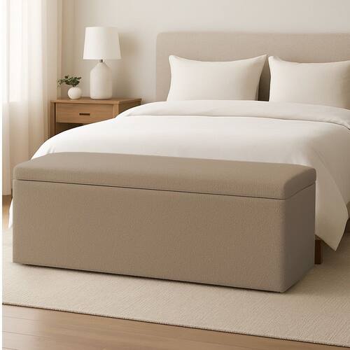 Calçadeira Baú Queen 1,60m Grécia Boucle Capuccino Dal Poz Estofados