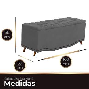 Calçadeira Baú Queen Estofada Maitê Veludo Cinza Escuro