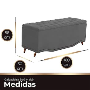 Calçadeira Baú Queen Estofada Maitê Veludo Cor Cinza Chumbo