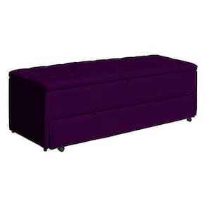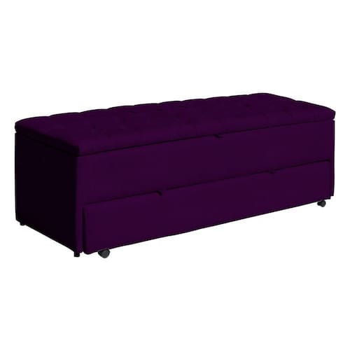 Calçadeira Baú Sapateira Casal 140cm Ayla Veludo Capitonê - Estopar - Roxo