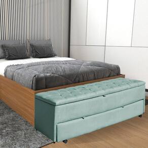 Calçadeira Baú Sapateira Casal 140cm Ayla Veludo Capitonê - Estopar - Verde Claro