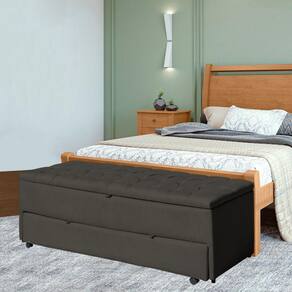Calçadeira Baú Sapateira Casal 140cm Ayla Veludo Capitonê - Estopar - Grafite