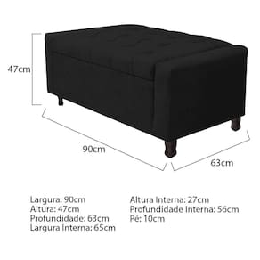 Calçadeira Baú Solteiro Everest P02 90 Cm Para Cama Box Corano - Doce Sonho Móveis Cor Preto