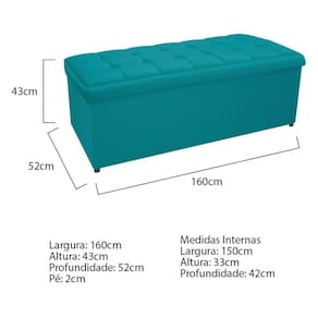 Calçadeira Copenhague 160 Cm Queen Size Suede Azul Turquesa - Doce Sonho Móveis
