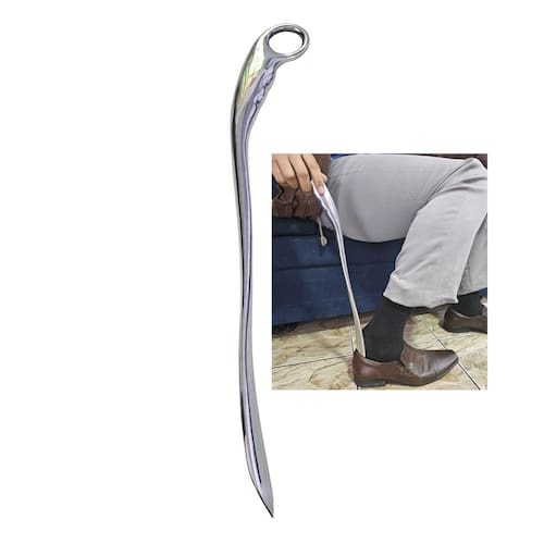 Material: aluminio de alta resistência Comprimento: 53 cm, ideal para evitar a necessidade de se curvar Design Ergonômico: Cabo longo e alça confortável para um manuseio fácil Portátil: leve e fácil de transportar, perfeita para uso em casa ou em viagens Versátil: adequada para todos os tipos de calçados, incluindo tênis, sapatos sociais e botas