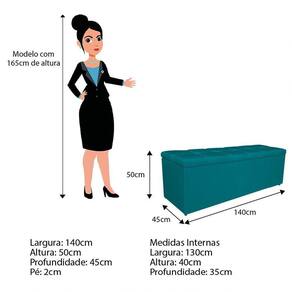 Calçadeira Estofada Manchester 140 Cm Casal Suede Azul Turquesa - Doce Sonho Móveis