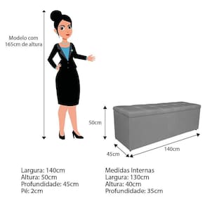 Calçadeira Estofada Manchester 140 Cm Casal Suede Cinza - Doce Sonho Móveis