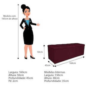Calçadeira Estofada Manchester 160cm Queen Size Suede Bordô