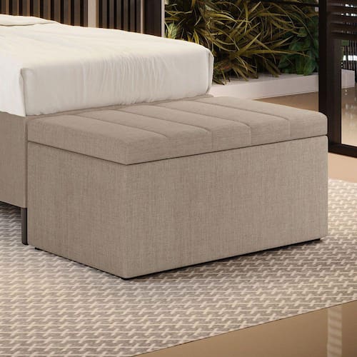 Características do Produto: Madeira de eucalipto proveniente de reflorestamento Fixação com grampos galvanizados Espuma Poliuretano D20 Revestimento: Linho Cor: Bege Tamanho: Solteiro para cama de 88 cm Possui pés: Sim Tipo de pés: 4 sapatas Possui baú interno Embalagem: plástico bolha, papelão ondulado, malha, plástico Garantia de 3 meses contra defeitos de fábrica.