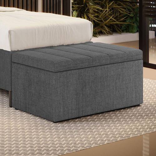 Características do Produto: Madeira de eucalipto proveniente de reflorestamento Fixação com grampos galvanizados Espuma Poliuretano D20 Revestimento: Linho Cor: Cinza Escuro Tamanho: Solteiro para cama de 88 cm Possui pés: Sim Tipo de pés: 4 sapatas Possui baú interno Embalagem: plástico bolha, papelão ondulado, malha, plástico Garantia de 3 meses contra defeitos de fábrica.