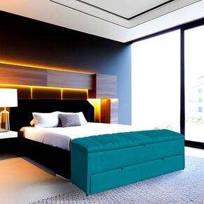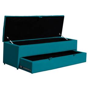Calçadeira Recamier Baú Sapateira Casal King 190cm Ayla Suede Tampo Reto - Estopar - Azul Turquesa
