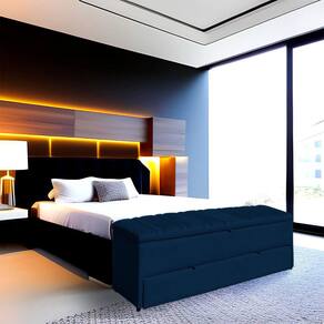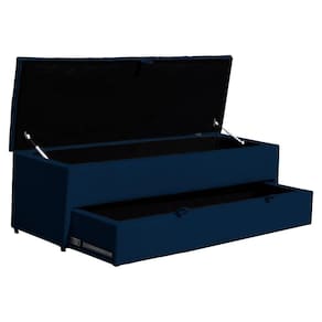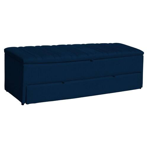 Calçadeira Recamier Baú Sapateira Casal Queen 160cm Ayla Suede Tampo Reto - Estopar - Azul Marinho