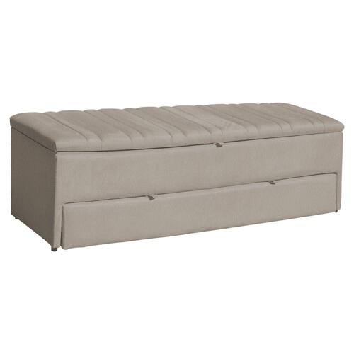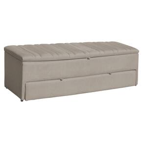 Calçadeira Recamier Baú Sapateira Casal Queen 160cm Ayla Suede Tampo Reto - Estopar - Bege