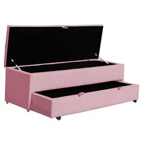 Calçadeira Recamier Baú Sapateira Solteiro 90cm Ayla Suede Tampo Reto - Estopar - Rosa