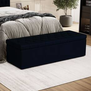 Características do Produto: Madeira de eucalipto proveniente de reflorestamento Fixação com grampos galvanizados Espuma Poliuretano D20 Revestimento: Veludo Cor: Azul marinho Tamanho: Queen para cama de 158 cm Possui pés: Sim Tipo de pés: 4 sapatas Possui detalhes em capitonê Possui baú interno Embalagem: plástico bolha, papelão ondulado, malha, plástico Garantia de 3 meses contra defeitos de fábrica.