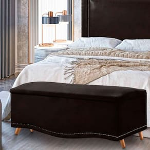 CARACTERISTICAS DO PRODUTO: Material da Estrutura: Madeira de eucalipto Material e Densidade da Espuma: Poliuretano sem carga Revestimento: Sintético Facto Tipo de Pé: Em madeira chanfrado de 10,5 cm Possui Frame: Não Pistões no Baú: Sim