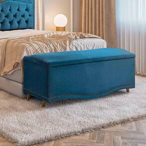 Calçadeira Sapateira Baú Holanda 90cm de Largura Veludo Star Confort - Azul