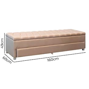 Características: Material da Estrutura: Madeira de eucalipto Material e Densidade da Espuma: Poliuretano sem carga certificada, D-20 Revestimento: Linho Possui Pés: Sim Tipo de Pé: Pé de plástico revestidos de metal com 5 cm Possui Frame: Não Pistões no baú: Sim a gás Possui gaveta: Sim