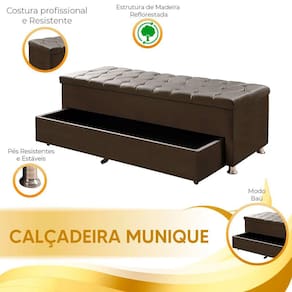 Calçadeira Sapateira Baú Munique 195cm de Largura Veludo Star Confort - Marrom Chocolate