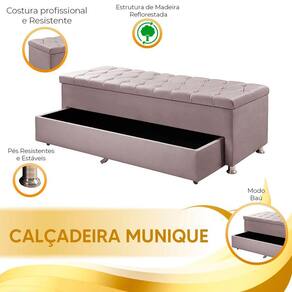 Calçadeira Sapateira Baú Munique Veludo 195cm de Largura Star Confort - Rosê