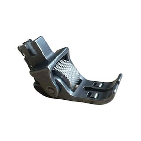 Calcador Reta Industrial grande e com auxiliar Rolete dentado,indicado para tecido medio e pesado. alcador Máquina Costura Reta Industrial com Roletes Transporta com muito mais facilidade o tecido, ajuda a resolver o problema de quando o calcador patina/desliza sobre o tecido e também quando deixa marcação no tecido.
