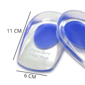 - Produto: Par de Calcanheiras em Gel de Silicone. - Indicações: Alívio de dores causadas por esporão, fascite plantar, absorção de impacto. - Material: 100% Silicone em Gel de alta qualidade. - Tamanho: Único e unissex se adapta à maioria dos tamanhos de pés adultos . - Dimensões: 11 cm comprimento x 6 cm largura . - Conteúdo da Embalagem: 1 Par contendo 2 unidades .