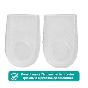 Calcanheira com orifício, calcanheira Pauher silicone, calcanheira para esporão de calcâneo, calcanheira anatômica, calcanheira antiderrapante, calcanheira absorção impacto, calcanheira ortopédica silicone.