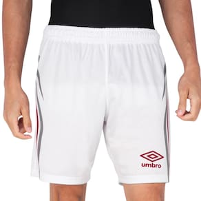 - Detalhamento: Calção com logo da Umbro na perna esquerda próximo à barra, cós elástico, com cordão interno para melhor ajuste, tecido leve e confortável. Detalhes gráficos na lateral em tons de cinza e vermelho, que formam linhas dinâmicas e assimétricas, conferindo um visual esportivo, moderno e cheio de movimento ao calção;