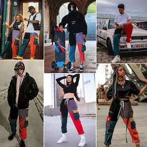 - Design de calça cargo para homens e mulheres: a calça cargo casual longa masculina com cordão tem um design autêntico retrô em bloco de cores, bolsos cargo multiuso para várias ferramentas e equipamentos.